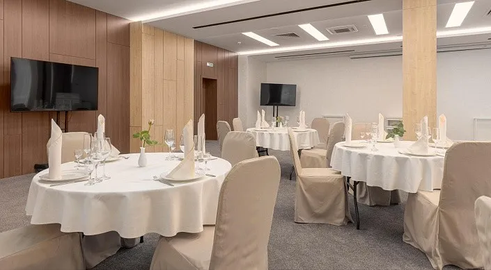 В комплексе созданы отличные условия для проведения корпоративных мероприятий, благодаря наличию отличных залов, различающихся по площади, возможности проведения банкетов в ресторане «Сосновая роща», а также приятной особенностью для участников деловых встреч и переговоров является наличие компьютерного зала.